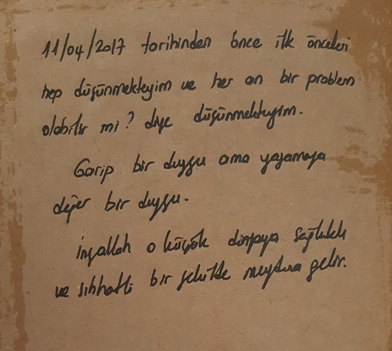 11/04/2017 tarihinden önce ilk önceleri hep düşünmekteydim ve her an bir problem olabilir mi diye düşünmekteydim. Garip bir duygu ama yaşamaya değer bir duygu! O küçük, inşallah dünyaya sağlıklı ve sıhhatlı bir şekilde meydana gelir.